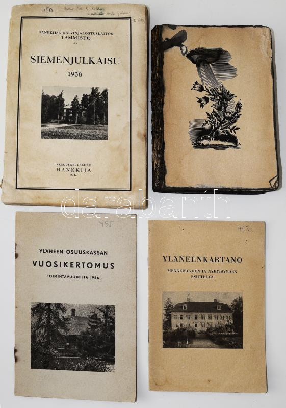Description: 4 db finn nyelvű könyv: Betti Alver (verseskönyv), Ylaneen Osuuskassan: Vuosikertomus, Tomintavuodelta 1936, Ylaneenkartano: Menneisyysen ja nykysyyden esittelya, Siemenjulkaisu 1938.