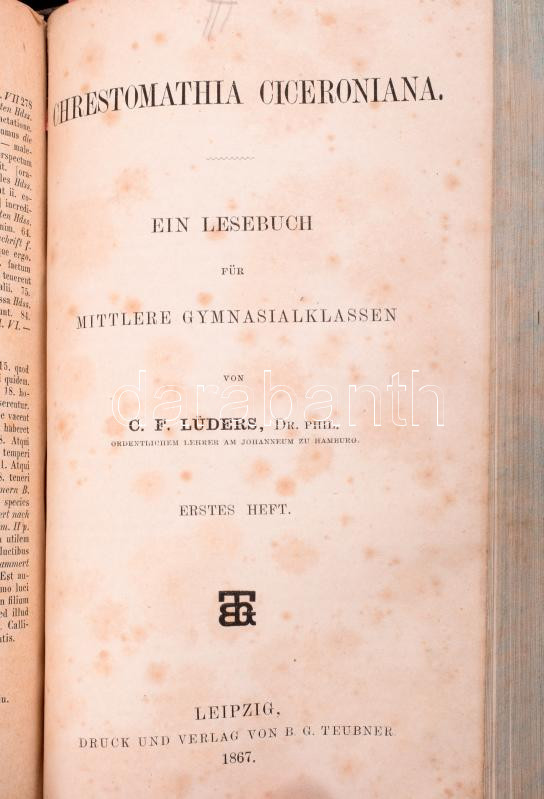 Chrestomathia Ciceroniana: ein Lesebuch für mittlere Gymnasialklassen. Marcus Tullius Cicero , C. F. Lüders. P 1867. Publisher: B. G. Teubner, 94p