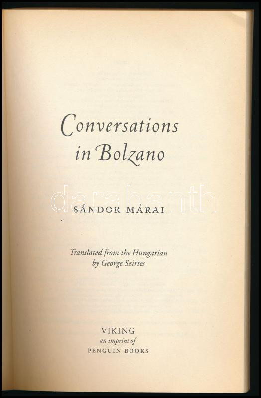 Márai, Sándor: Conversations in Bolzano. [Vendégjáték Bolzanóban.] For... https://www.darabanth.com/en/514-Auction-philately-postcards-numismatics-artwork-books-colletibles-jewelry/515.0/Books/Books-Other-languages~629/Marai-Sandor-Conversations-in-Bolzano-Vendegjatek-Bolzanoban-Ford-George-Szirtes-Camb~II3480772
