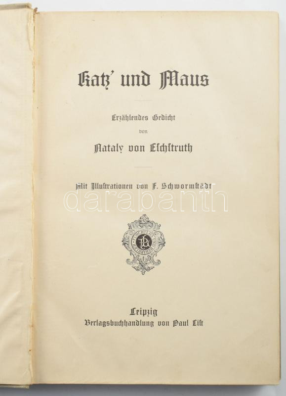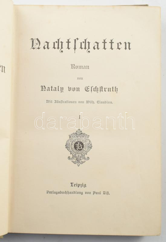 Description: Nataly von Eschstruth 2 kötete: Nachtschatten.; Katz und Maus. Leipzig, é.n., Paul List, 284 p.; 292 p. Német nyelven. Kiadói aranyozott, festett egészvászon-kötés, kissé kopott borítóval, kissé sérült gerinccel, helyenként kissé foltos lapokkal.