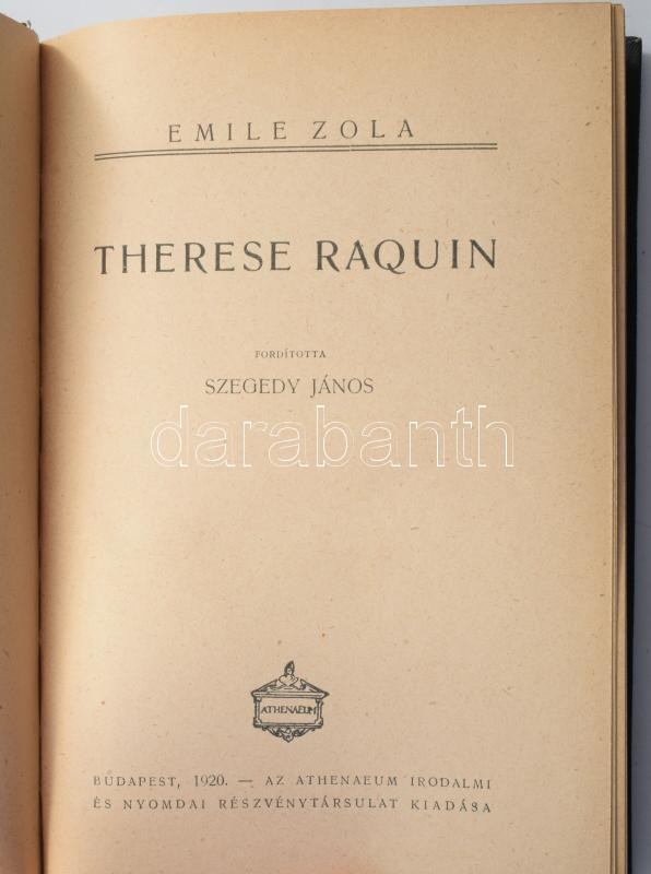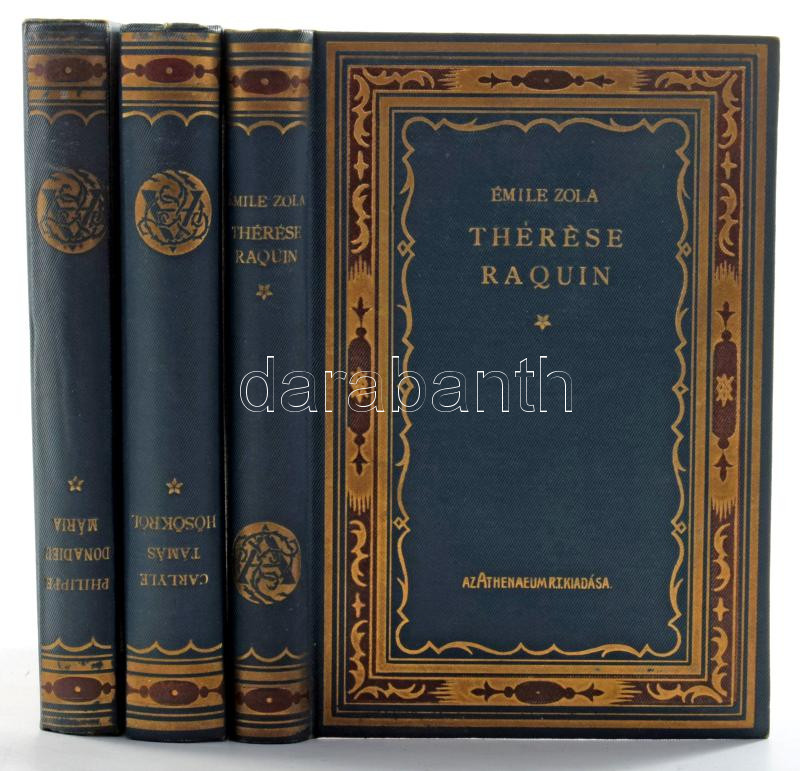 3 db könyv - Philippe: Donadieu Mária. + Carlyle Tamás: Hősökről. + Zola, Émile: Thérése Raquin. Bp., Athenaeum. Kiadói aranyozott egészvászon sorozatkötés, jó állapotban.