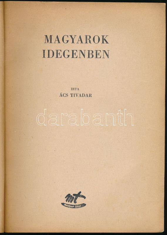 https://www.darabanth.com/en/514-Auction-philately-postcards-numismatics-artwork-books-colletibles-jewelry/515.0/Books/Books-Other-rarities~633/Acs-Tivadar-Magyarok-idegenben-Bp-Magyar-Teka-Kiadoi-papirkotes-jo-allapotban~II3477506
