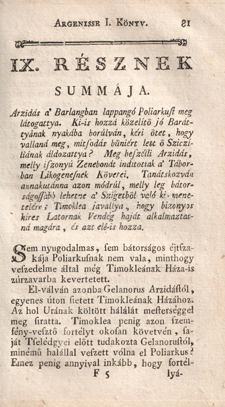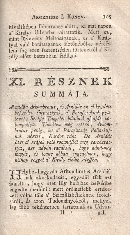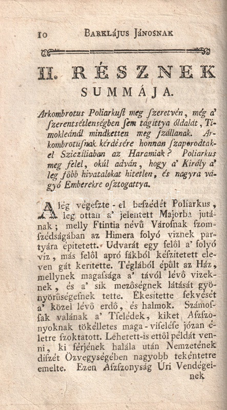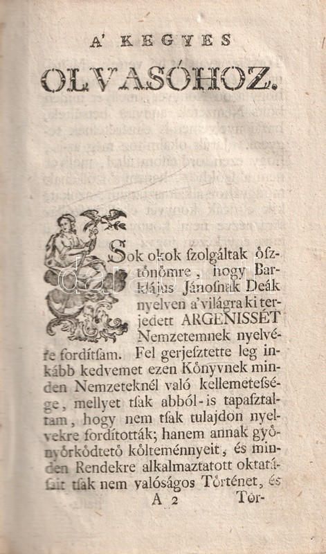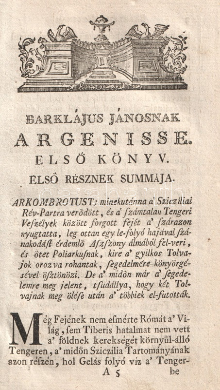 Barklájus János' Argenisse, mellyet néhai tekéntetes nemes Fejér Antal deák nyelvbűl magyarra fordíttatott. Első kötés.