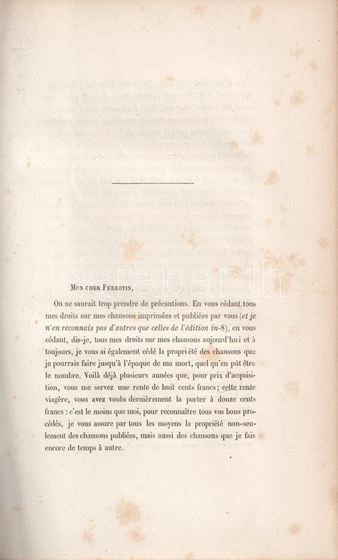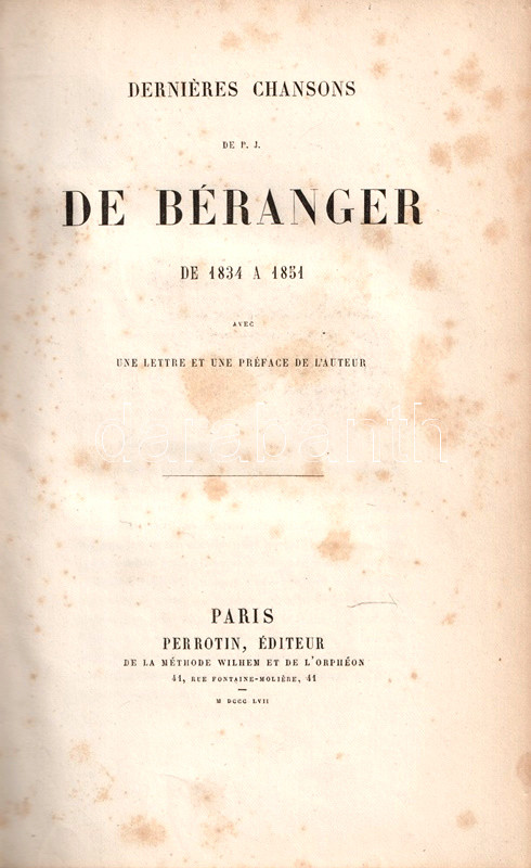 Dernieres chansons de Pierre-Jean de Béranger de 1834 a 1851. Une lettre et un préface de l'auteur.
