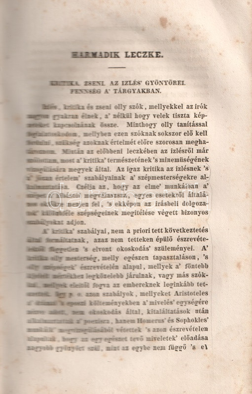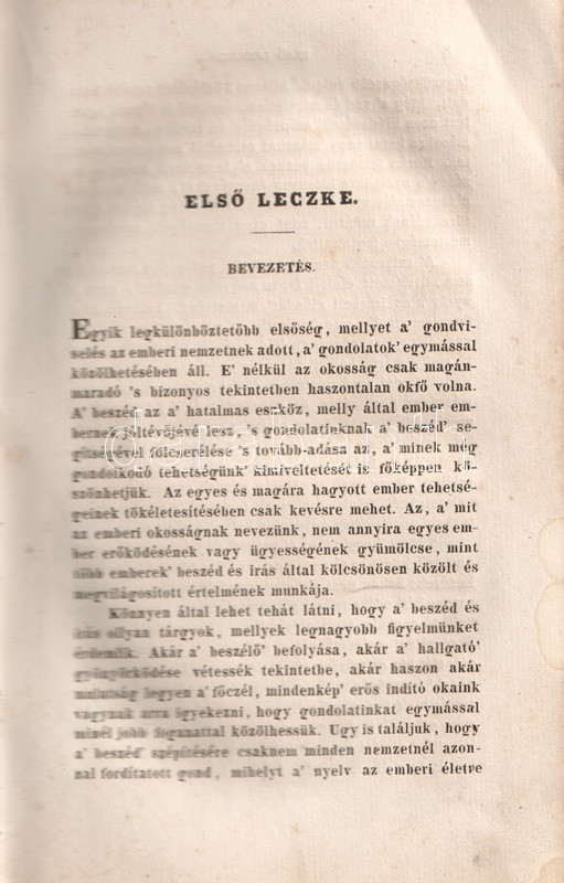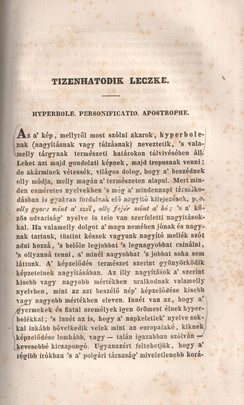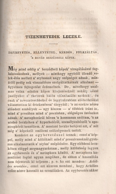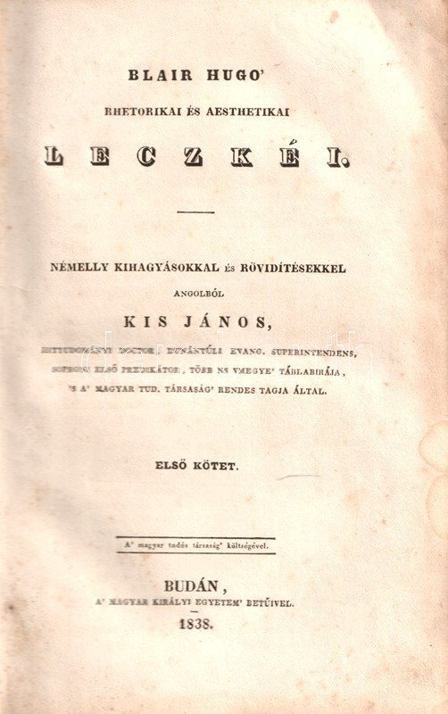 Budán, 1838. A' magyar tudós társaság' költségével - A' magyar királyi egyetem' betűivel. [2] + VI + 7-399 + [1] p. Egyetlen magyar kiadás.