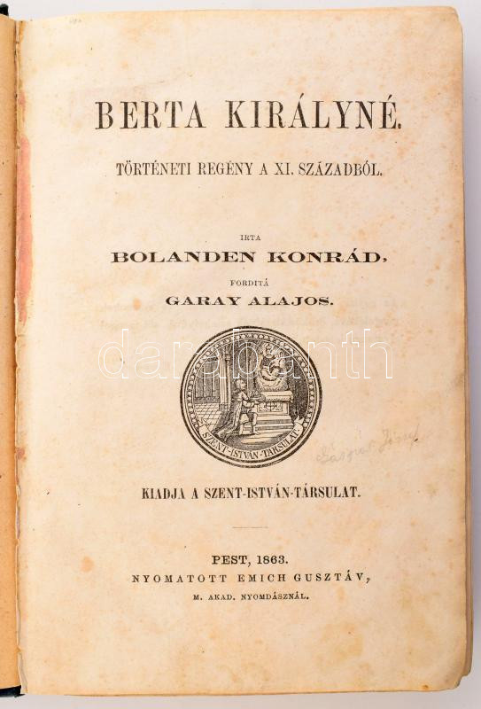 Bolanden Konrád: Berta királyné. Történeti regény a XI. századból. For... https://www.darabanth.com/en/514-Auction-philately-postcards-numismatics-artwork-books-colletibles-jewelry/515.0/Books/Books-Other-rarities~633/Bolanden-Konrad-Berta-kiralyne-Torteneti-regeny-a-XI-szazadbol-Ford-Garay-Alajos-Pest~II3409163