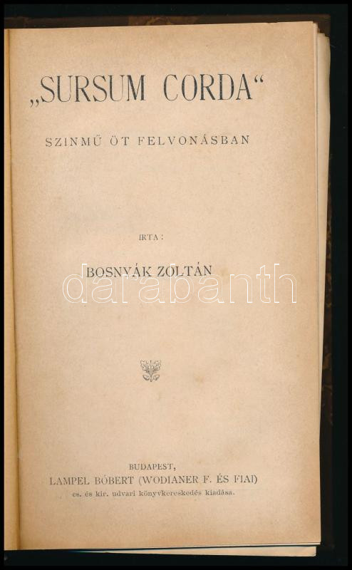 https://www.darabanth.com/en/514-Auction-philately-postcards-numismatics-artwork-books-colletibles-jewelry/515.0/Books/Books-Other-rarities~633/Bosnyak-Zoltan-Sursum-corda-Szinmu-ot-felvonasban-Bp-Lampel-Felvaszon-kotes-kopot~II3459356