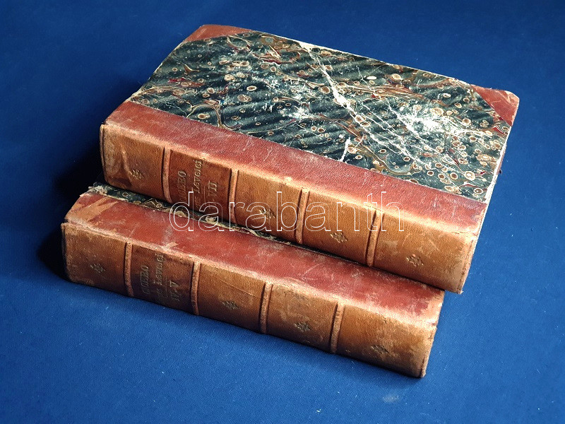Egységes, aranyozott, álbordás, enyhén kopott XIX. század végi félbőr kötésben. Jó példány.