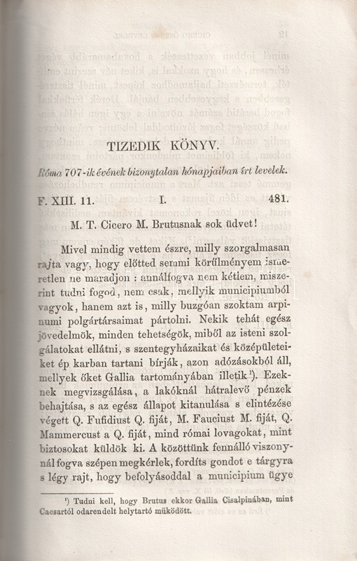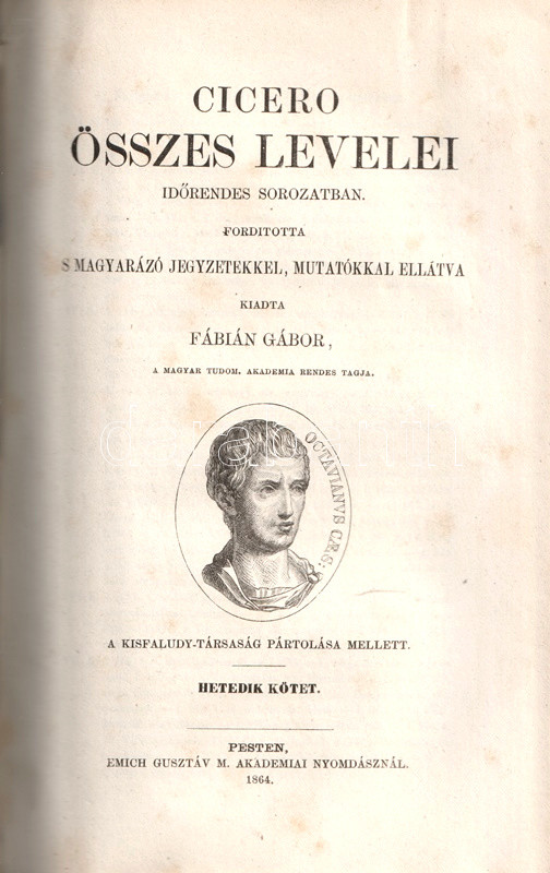 Marcus Tullius Cicero összes levelét először Fábián Gábor (1795-1877) író, műfordító ültette magyar nyelvre. Fordítónk eredetileg hat kötetet tervezett, ám a tartalommutatók és a tárgyi magyarázatok terjedelme szükségessé tette a teljes Cicero-kiadás hét kötetre bontását. Az 1861-1864 között megjelent teljes sorozat kötetei élén történelmi összefoglaló, majd a gazdag lábjegyzet-apparátussal ellátott levélfordítások. Az utolsó, hetedik kötetben közölt névmutató a késő köztársaság kori Róma politikai útvesztőjében nyújt eligazítást