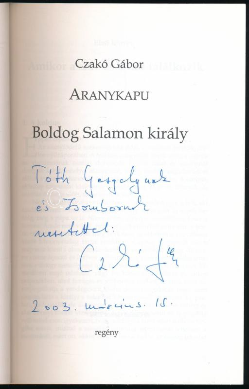 Czakó Gábor: Aranykapu. Boldog Salamon király. A szerző, Czakó Gábor (... https://www.darabanth.com/en/514-Auction-philately-postcards-numismatics-artwork-books-colletibles-jewelry/515.0/Books/Books-Other-rarities~633/Czako-Gabor-Aranykapu-Boldog-Salamon-kiraly-3Cem3EA-szerzo-3Cstrong3ECzako-Gabor3Cstrong3E-194~II3480930