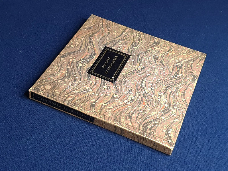 Kiadói kartonkötésben (Franz Dathe, Leipzig), az aranyozott címfelirat a gerincen és az első kötéstáblán fekete címkén. Szép példány.