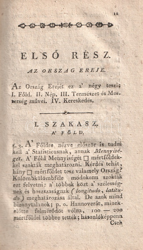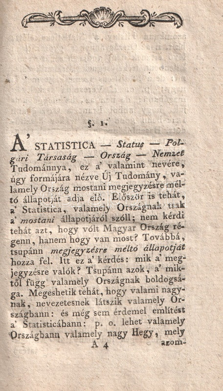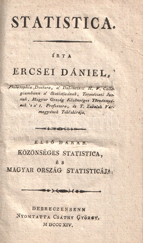 Ercsei Dániel: Statistica. Közönséges statistica, és Magyarország statisticája. Első darab. [Unicus, több nem jelent meg.]