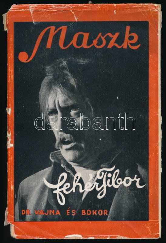 Description: Fehér Tibor: Maszk. A színész arca. Méreiné Wellesz Ella 32 eredeti fényképfelvételével. [Bp.],1943.,Dr. Vajna és Bokor, 32 p.+16 t. Kiadói kartonált papírkötés, kiadói illusztrált papír védőborítóban, sérült gerinccel és szakadt, részben hiányos papírborítóval.