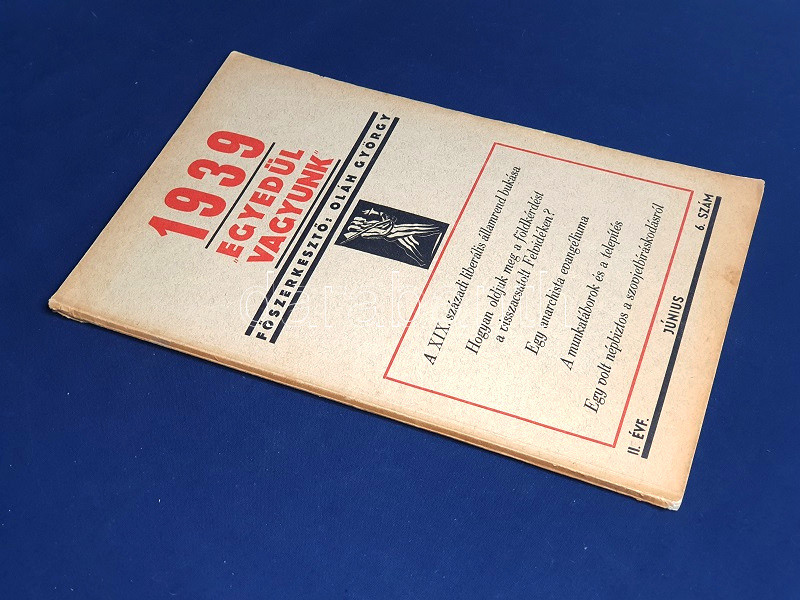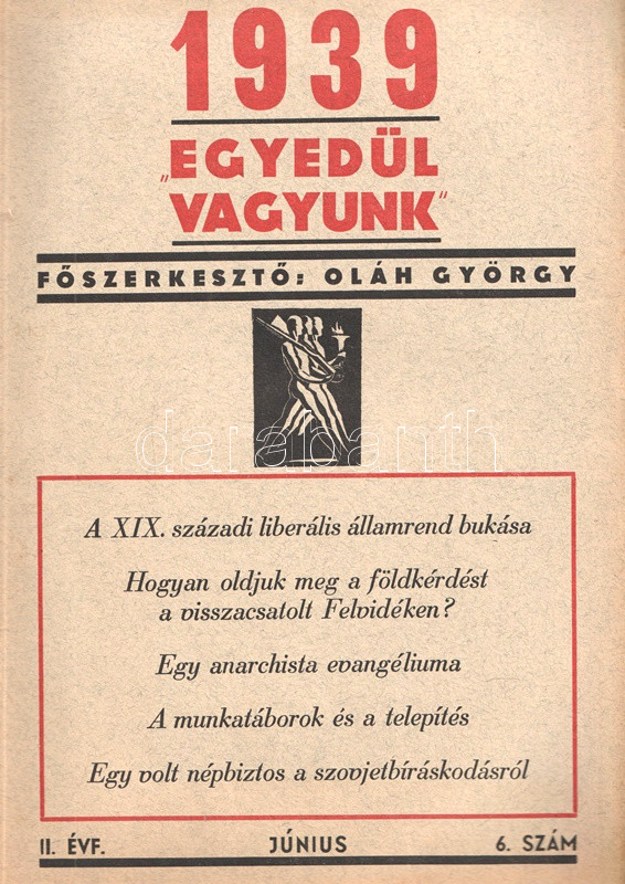 [Folyóirat] Egyedül Vagyunk. Társadalompolitikai és szépirodalmi folyóirat. Megjelenik havonta. Főszerkesztő: Oláh György. II. évfolyam, 6. szám. (1939. június.)