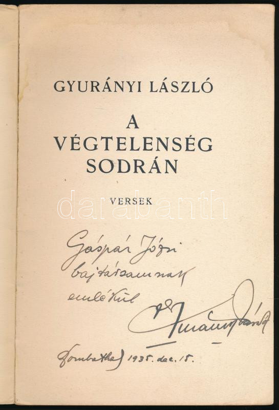 Gyurányi László: A végtelenség sodrán. Versek. A szerző által dedikált... https://www.darabanth.com/en/514-Auction-philately-postcards-numismatics-artwork-books-colletibles-jewelry/515.0/Books/Books-Other-rarities~633/Gyuranyi-Laszlo-A-vegtelenseg-sodran-Versek-A-szerzo-altal-3Cstrong3Ededikalt3Cstrong3E-pe~II3475446