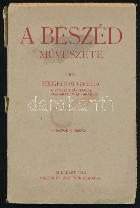 Hegedűs Gyula: A beszéd művészete. Bp., 1920, Singer és Wolfner, 109+(... https://www.darabanth.com/en/514-Auction-philately-postcards-numismatics-artwork-books-colletibles-jewelry/515.0/Books/Books-Other-rarities~633/Hegedus-Gyula-A-beszed-muveszete-Bp-1920-Singer-es-Wolfner-109plus3-p-Masodik-kiadas-K~II3460068