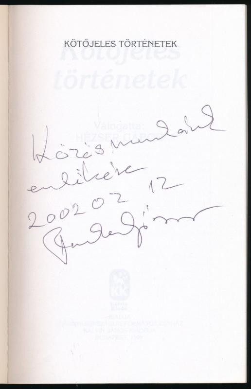 Hézser Gábor: Kötőjeles történetek. DEDIKÁLT! Bp., 1999, Kálvin Kiadó....