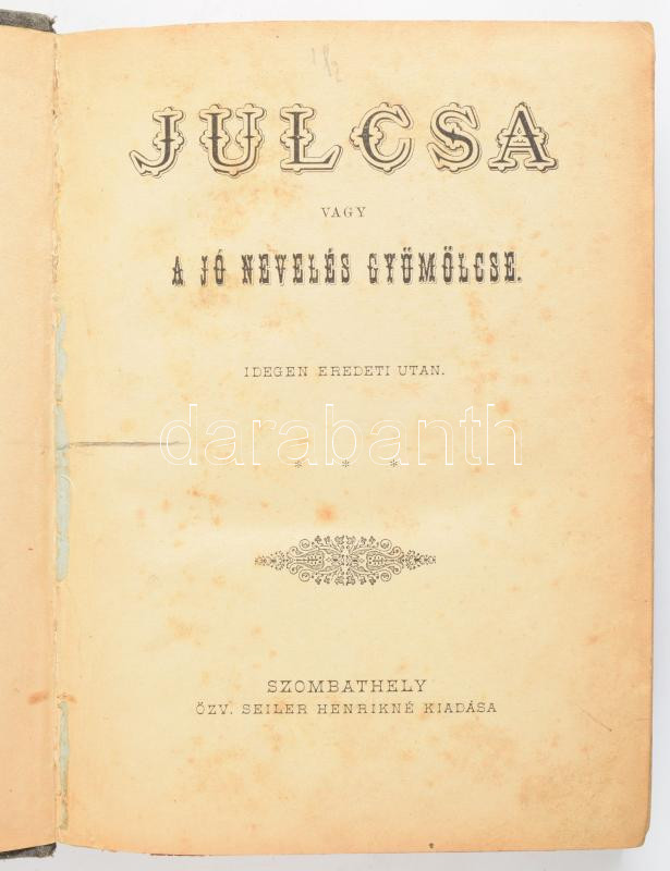 https://www.darabanth.com/en/514-Auction-philately-postcards-numismatics-artwork-books-colletibles-jewelry/515.0/Books/Books-Other-rarities~633/Julcsa-vagy-a-jo-neveles-gyumolcse-Szombathely-Ozv-Seiler-Henrikne-kiadasa-Felvaszon-kC3~II3459988