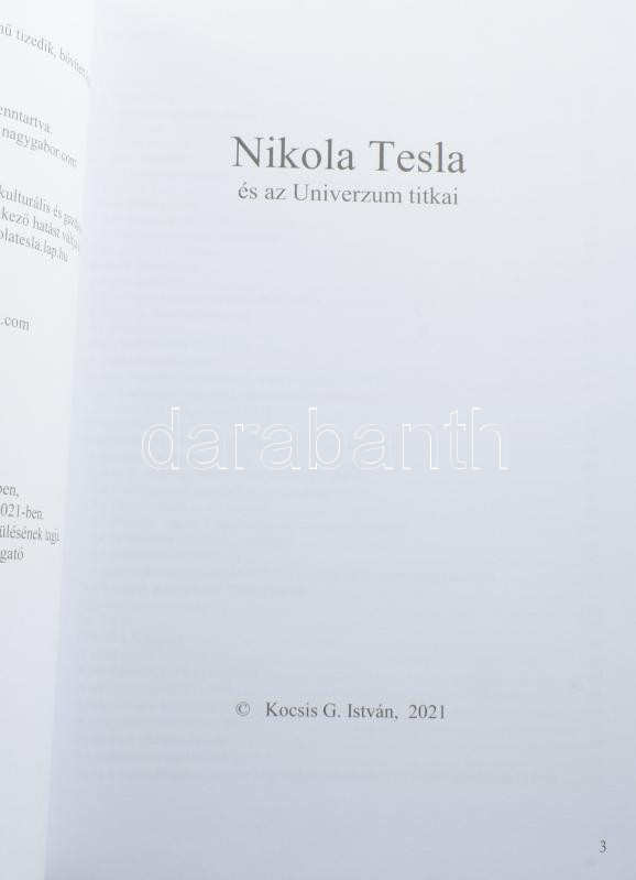 Kocsis G. István: Nikola Tesla és az univerzum titkai. hn., 2021, Szer... https://www.darabanth.com/en/514-Auction-philately-postcards-numismatics-artwork-books-colletibles-jewelry/515.0/Books/Books-Other-rarities~633/Kocsis-G-Istvan-Nikola-Tesla-es-az-univerzum-titkai-hn-2021-Szerzoi-Gyoma-Kner-ny-Kiad~II3478232