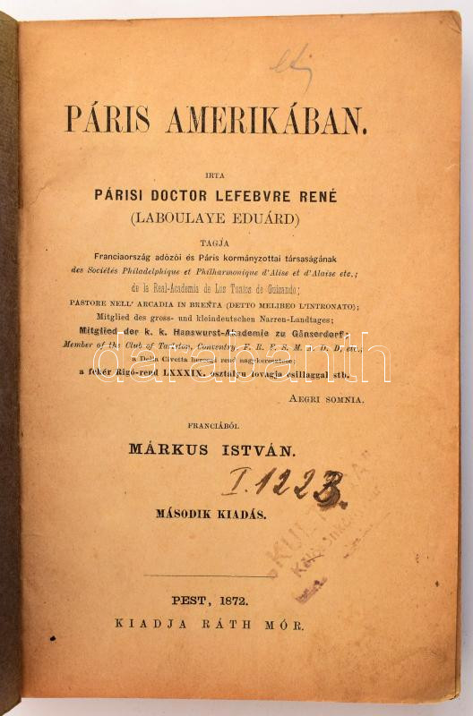 Lefebvre,René: Páris Amerikában. Ford.: Márkus István. Pest, 1872, Rát...