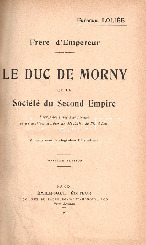 Frédéric Loliée (1855-1915) francia történész, a császári család rokona. Családi dokumentumokra, belügyminisztériumi és rendőri jelentésekre támaszkodó áttekintése a II. Császárság vezető köreinek, arisztokráciájának társadalomtörténetét dolgozza fel.