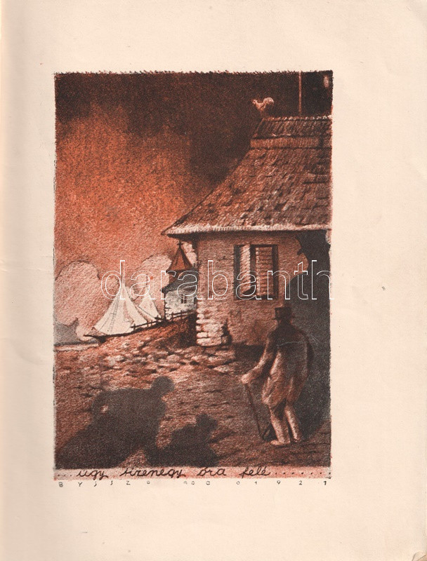 Fűzve, Byssz Róbert színes grafikájával illusztrált, enyhén sérült kiadói borítóban. Jó példány.