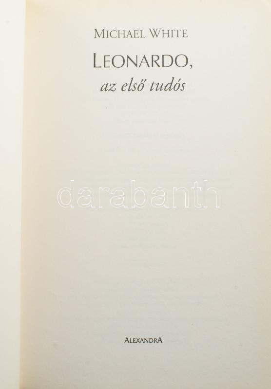 Michael White: Leonardo, az első tudós. Ford.: Getto Katalin. Pécs,200... https://www.darabanth.com/en/514-Auction-philately-postcards-numismatics-artwork-books-colletibles-jewelry/515.0/Books/Books-Other-rarities~633/Michael-White-Leonardo-az-elso-tudos-Ford-Getto-Katalin-Pecs-2005-Alexandra-Fekete-feher-~II3478415