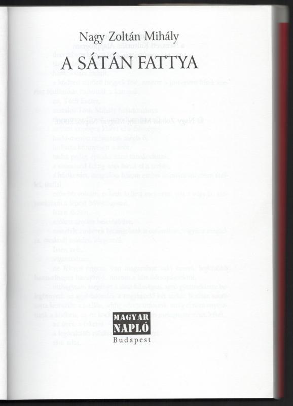 Nagy Zoltán Mihály: A sátán fattya. Bp., 2000, Magyar Napló. Kiadói pa...