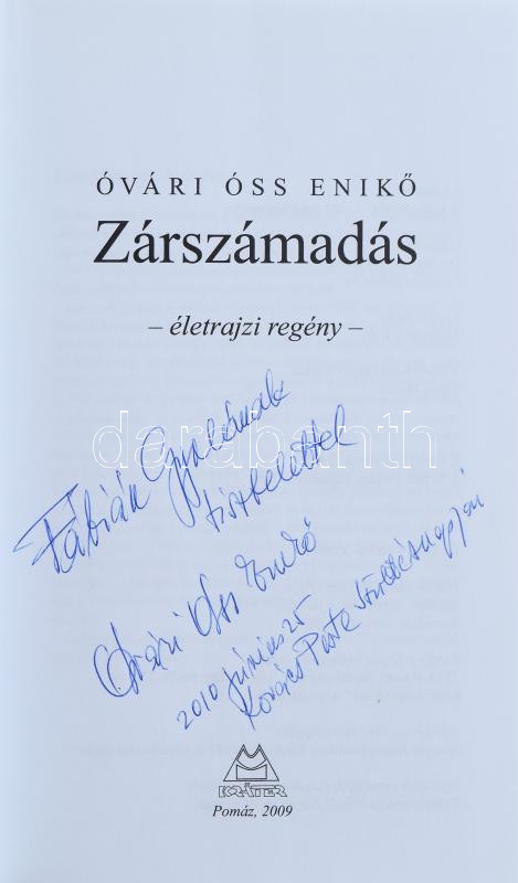 https://www.darabanth.com/en/514-Auction-philately-postcards-numismatics-artwork-books-colletibles-jewelry/515.0/Books/Books-Other-rarities~633/Ovarosi-Oss-Eniko-Zarszamadas-DEDIKALT-Pomaz-2009-Krater-Kiadoi-kartonalt-kotes-~II3423339