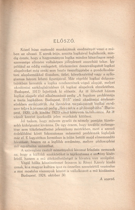 Pauler Ákos (1876-1933) filozófus, egyetemi tanár több évtizedes logikai munkásságát kötetünkben összegzi. A logika osztályozó elveit a szerző a kötet második részében a tudományelméletre és az ismeretelméletre is kiterjeszti. A mű 1929-ben németül is megjelent.