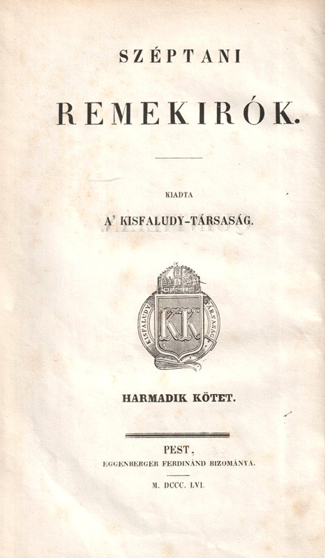 Eger, 1856. Kiadta a' Kisfaludy-Társaság. Az érseki lyceum betűivel. [10] + IV + [2] + 420 [helyesen 418] p. Első magyar fordítás.