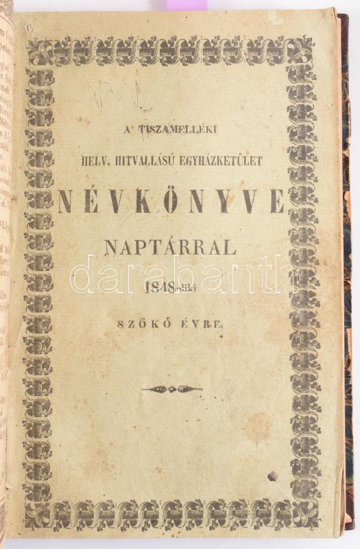 A Tiszamelléki helv .hitvallású egyházkerület névkönyve naptárral 1848-diki szőkő évre. (112) p. Eredeti papírborítóval + hozzákötve: