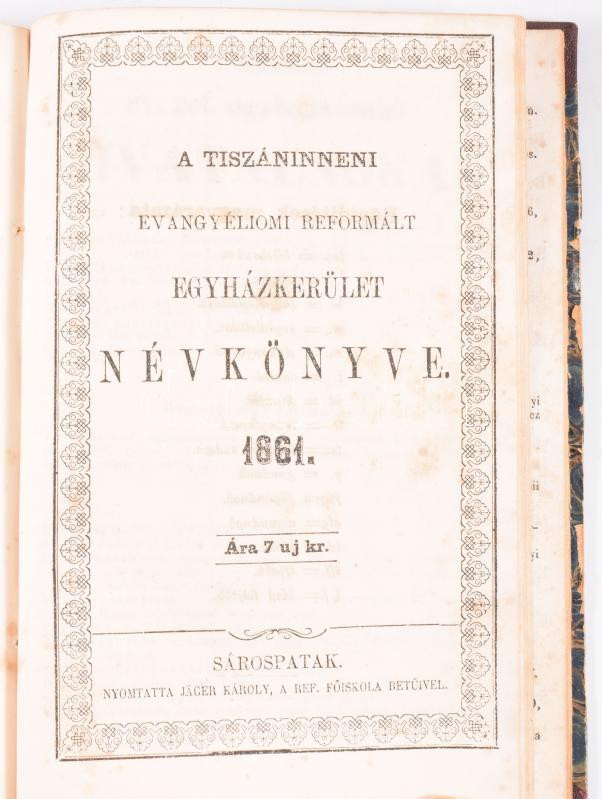 A Tiszáninneni Evangyéliomi reformált egyházkerület névkönyve 1861. Sárospatak, Jager Károly. 31 p.
