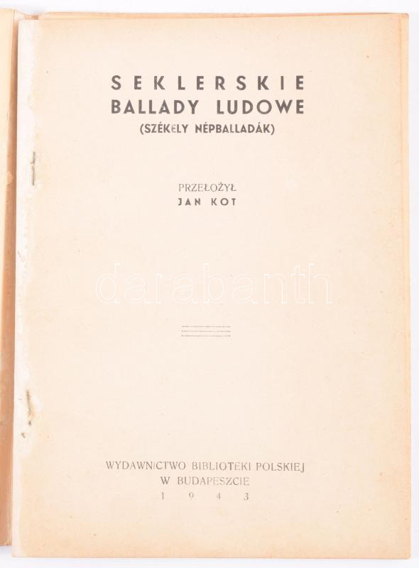 Seklerskie ballady ludowe (Székely népballadák). Przełoźył (ford.) Jan... https://www.darabanth.com/en/514-Auction-philately-postcards-numismatics-artwork-books-colletibles-jewelry/515.0/Books/Books-Other-rarities~633/Seklerskie-ballady-ludowe-Szekely-nepballadak-PrzeC582oC5BAyC582-ford-Jan-Kot-Budapeszcie-1943-~II3483724