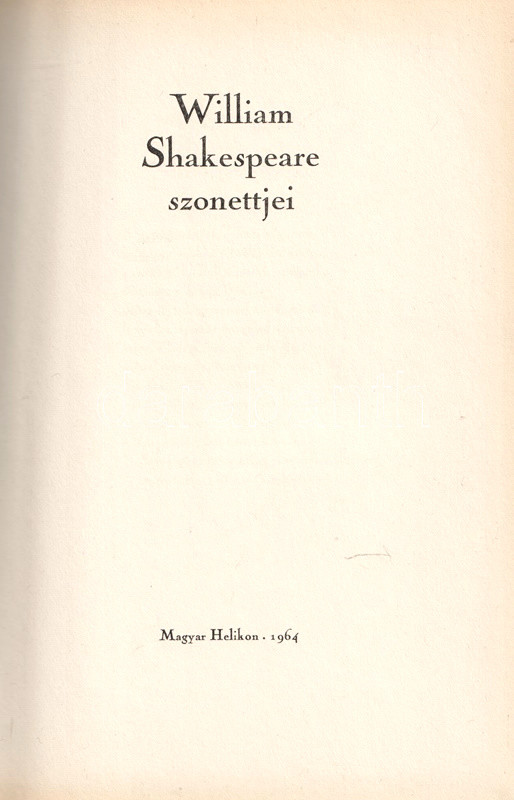 William Shakespeare szonettjei. Fordította Szabó Lőrinc. A rézkarcokat Würtz Ádám készítette. (Számozott.)