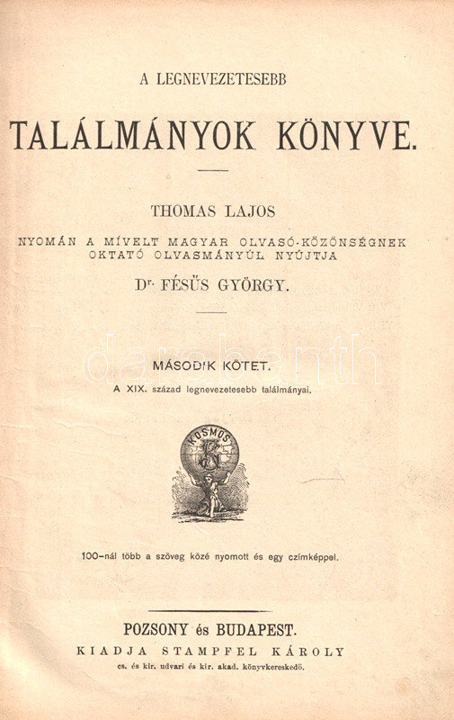 A legnevezetesebb találmányok könyve. Thomas Lajos nyomán a mívelt magyar olvasóközönségnek oktató olvasmányul nyújtja Fésűs György. Második kötet: A XIX. század legnevezetesebb találmányai.