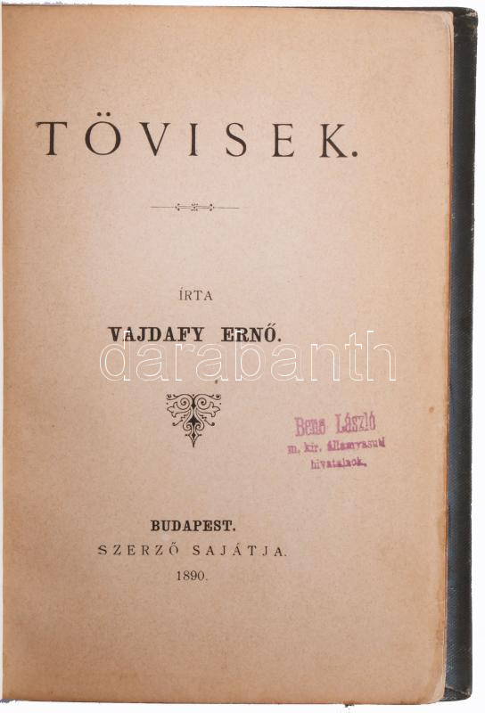 Vajdafy Ernő. Tövisek. Bp., 1980. Szerzői. 156p. Kiadói, igényesen javított vászon kötésben, kopott aranyozással, aranyozott lapélekkel