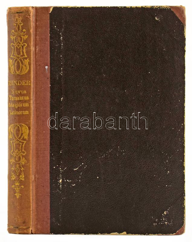Wilhelm Binder: Novus Thesaurus Adagiorum Latinorum. Lateinischer Sprichwörterschatz. Stuttgart, 1866, Eduard Fischhaber, XIV+2+403 p. Zweite Ausgabe. Német és latin nyelven. Korabeli aranyozott félvászon-kötés, kopott borÃtóval, kissé sérült gerinccel.