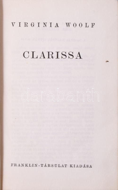 https://www.darabanth.com/en/514-Auction-philately-postcards-numismatics-artwork-books-colletibles-jewelry/515.0/Books/Books-Other-rarities~633/Woolf-Virginia-Clarissa-Bp-Franklin-Felvaszon-kotes-serult-papir-vedoboritoval-ko~II3459312