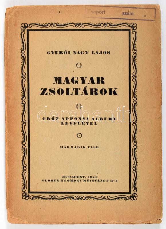 https://www.darabanth.com/en/514-Auction-philately-postcards-numismatics-artwork-books-colletibles-jewelry/515.0/Books/Books-Religion~628/Gyuroi-Nagy-Lajos-Magyar-zsoltarok-Grof-Apponyi-Albert-levelevel-Bp-1924-Globus-KIadoi-p~II3453648