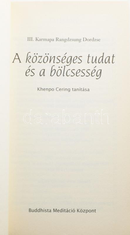 III. Karmapa Rangdzsung Dordzse: A közönséges tudat és a bölcsesség. Khenpo Cering. Tar, én.,Buddhista Meditáció Központ. Kiadói papírkötés.