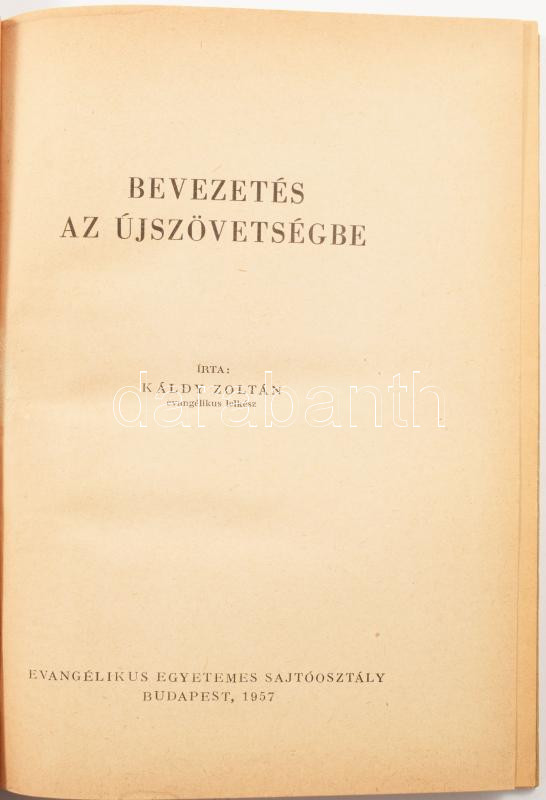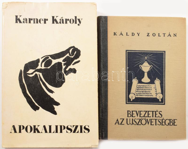 Karner Károly: Apokalipszis. Fordítás és magyarázat. Bécs, 1974., Szerzői. Emigráns kiadás. Kiadói papírkötés, kissé szakadt borítékkal. + Káldy Zoltán: Bevezetés az újszövetségbe. Bp., 1957, Evangélikus Egyetemes Sajtóosztály. Kiadói félvászon-kötés.