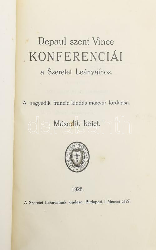 [Páli Szent Vince]: Depaul szent Vince konferenciái a Szeretet Leányai... https://www.darabanth.com/en/514-Auction-philately-postcards-numismatics-artwork-books-colletibles-jewelry/515.0/Books/Books-Religion~628/Pali-Szent-Vince-Depaul-szent-Vince-konferenciai-a-Szeretet-Leanyaihoz-A-negyedik-francia-kia~II3291235