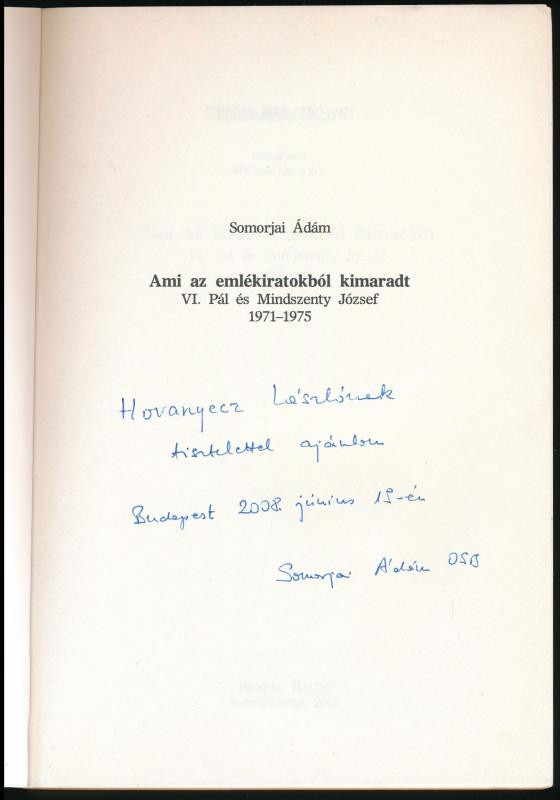 Somorjai Ádám: Ami az emlékiratokból kimaradt. VI. Pál és Mindszenty J... https://www.darabanth.com/en/514-Auction-philately-postcards-numismatics-artwork-books-colletibles-jewelry/515.0/Books/Books-Religion~628/Somorjai-Adam-Ami-az-emlekiratokbol-kimaradt-VI-Pal-es-Mindszenty-Jozsef-1971-1975-3Cem3EA-~II3480844