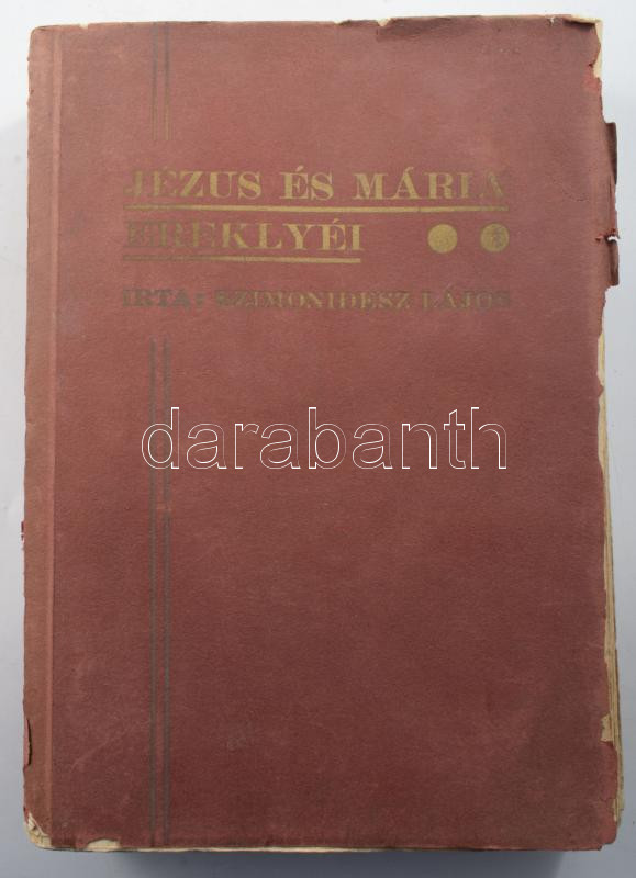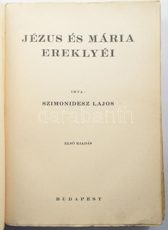 https://www.darabanth.com/en/514-Auction-philately-postcards-numismatics-artwork-books-colletibles-jewelry/515.0/Books/Books-Religion~628/Szimonidesz-Lajos-Jezus-es-Maria-ereklyei-Elso-kiadas-Bp-1933-Kiadoi-papirkotes-vi~II3477916