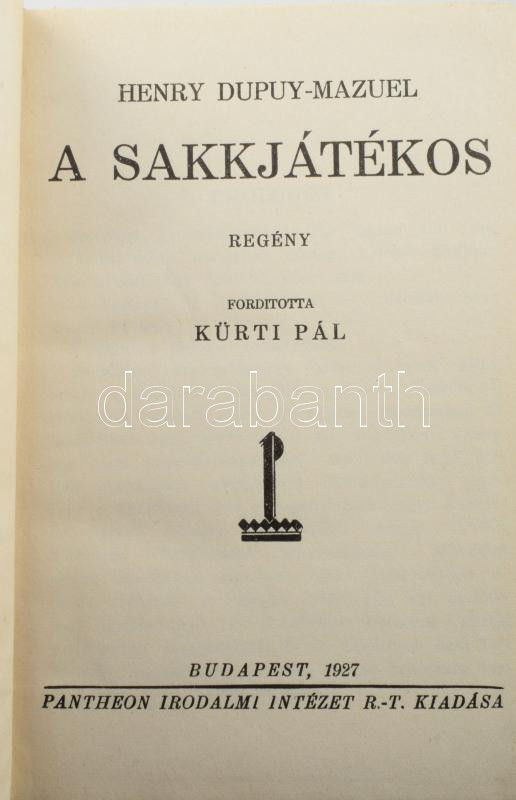 3 db könyv - Dahl: Utazás egy házmesteri fülke körül. Bp., Pantheon. + Manddelstamm: Hollywood. Bp., 1927, Pantheon. + Dupuy-Mazuel: A sakkjátékos. Bp., 1927, Pantheon. Kiadói papír és egészvászon kötés, kötetenként változó állapotban.