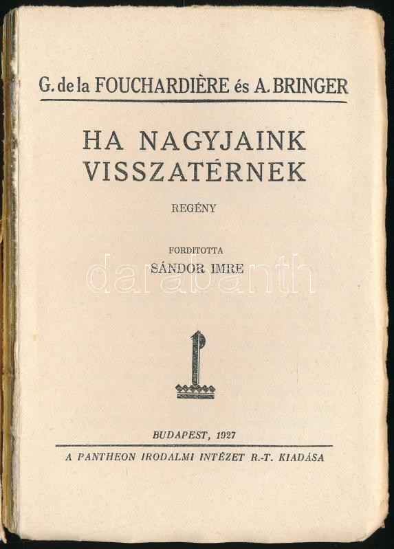 Fouchariére és Bringer: Ha nagyjaink visszatérnek. Bp., 1927, Pantheon. Kiadói papírkötés, kopottas állapotban.