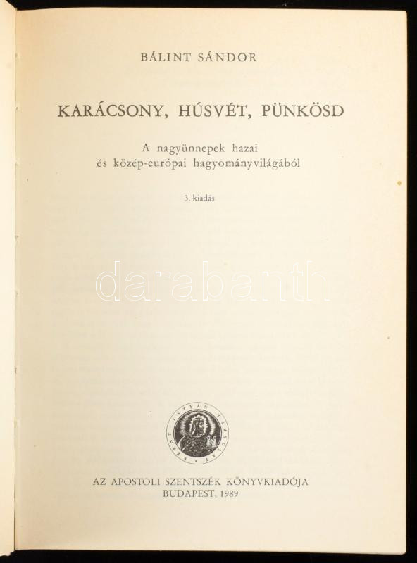 Bálint Sándor: Karácsony, húsvét, pünkösd. A nagyünnepek hazai és közép-európai hagyományvilágából. Bp., 1989, Szent István-Társulat, 4 Kiadói egészvászon-kötés, kiadói papír védőborítóban.