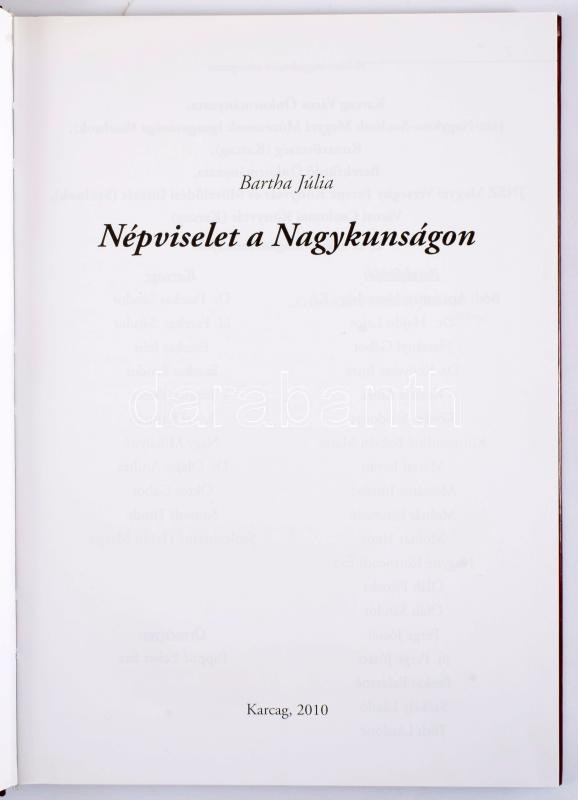 Bartha Júlia: Népviselet a Nagykunságon. Karcag, 2010. Kiadói kartonál...