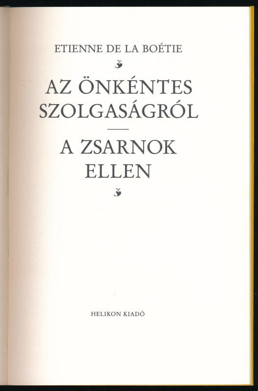 https://www.darabanth.com/en/514-Auction-philately-postcards-numismatics-artwork-books-colletibles-jewelry/515.0/Books/Books-Social-sciences~624/Boetie-Etienne-de-la-Az-onkentes-szolgasagrol-A-zsarnok-ellen-1990-Helikon-Studio-KiadC3~II3464234